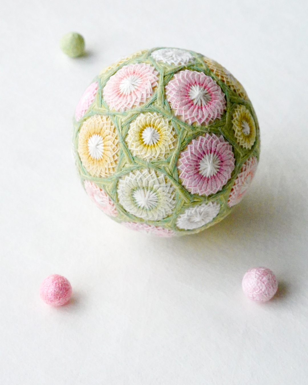 手まりの上に12輪のちいさな花を咲かせましょう。